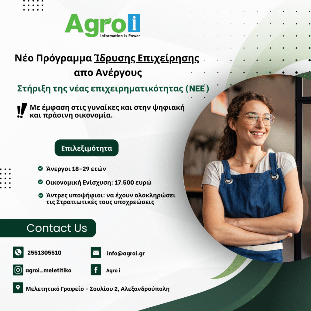 Νεο πρόγραμμα ενίσχυσης της νέας επιχειρηματικότητας για ανέργους ηλικίας 18-29 ετών, με έμφαση στις γυναίκες και στην ψηφιακή & πράσινη οικονομία